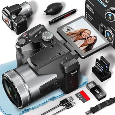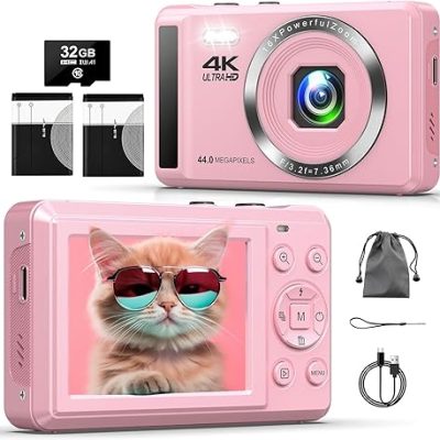 Digital Camera – 4K 44MP UHD Digital Cameras for Photography – Autofocus Point and Shoot Vlogging Camera with 16X Zoom, 32GB SD Card, 2 Batteries – Compact Small Camera for Kids Teens Boys Girls