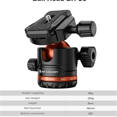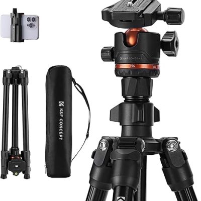 K&F Concept 70 inch/178cm Camera Tripod, Lightweight Travel Tripods for Camera with 360 Degree Ball Head Load Capacity 8kg/17.6lbs, Cellphone Clip for Smartphone Live Streaming Vlog K234A3+BH-36